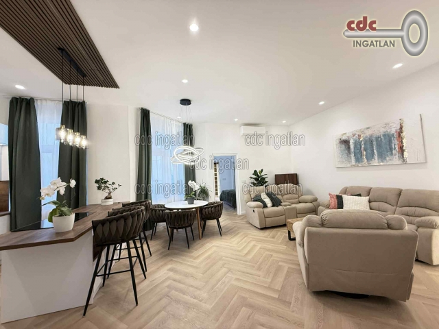 Eladó Budapest szívében egy exkluzív luxuslakás! Megvételre kínálunk a Belváros egyik legpatinásabb utcájában, az V. kerületi Papnövelde utcában egy teljes körűen, prémium minőségben felújított, 91 m²-es, 3 szobás, napfényes lakást. Az ingatlan III. emeleti, nagyon világos és csendes, amerikai konyhás nappali, tágas és elegáns tér + 2 külön nyíló szoba, gardróbszoba, 2 külön fürdőszoba a maximális kényelemért. Cirkófűtés, padlófűtés, komfort minden évszakban, elektromos redőny és szúnyogháló minden ablakon. A teljes körű felújítás során belsőépítész által megálmodott, egyedi enteriőr, prémium minőségű anyaghasználat, igényes kivitelezés. Rendezett, liftes társasház, kulturált lakóközösséggel. Üveg érintős kapcsolók, okosotthonnal felszerelt wifin keresztül irányítható fények, a szobákban Polár hűtő-fűtő wifi-s klíma, Mosókonyha gépesített: Bosch mosógép és szárító, asztalos által készített minőségi egyedi beépített szekrények és konyhabútor, Bosch hűtő, mosogatógép, sütő és mikró, Klarstein főzőlap és szagelszívó. Minőségi szaniterek, UV és hő ellen felfóliázott, 3 rétegű ablakok, amelyek privát szférát biztosítanak a tükör hatásnak köszönhetően. A lakás ideális választás mindazoknak, akik nem szeretnének kompromisszumot kötni: elegancia, modern kényelem és nagypolgári enteriőr, belvárosi életstílus egy helyen. Irányár: 269.000.000 Ft. Ez a lakás nem csupán otthon, hanem életstílus is! Ne hagyja ki ezt a ritka lehetőség egy ilyen színvonalú ingatlanra Budapest történelmi belvárosában! További információért vagy megtekintésért keressen bizalommal!