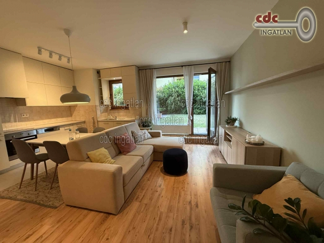 MARINAPARTON NAPFÉNYES ÁLOMLAKÁS SAJÁT KERTTEL ELADÓ! XIII. kerületben, az Úszódaru utcában kínáljuk megvételre ezt az V. emeleti, 71,35 m2-es + 104 m2-es saját kerttel és terasszal rendelkező, amerikai konyhás nappali + 2 külön nyíló szobás, D és DNY-i tájolású, egész nap napfényben úszó, egyedi mérésű házközponti fűtéses, csendes, kitűnő állapotú lakást. Az előszobába érkezünk, majd a DNY-i fekvésű, csupa napfényes, elegáns amerikai konyhás nappaliba, ahonnan közvetlen kijárat van a 104 m2-es, varázslatos saját kertbe és a festői szépségű Dunai panorámás teraszra. A bejárattól balra külön WC kézmosóval, mellette a fürdőszoba, majd a D-i fekvésű hatalmas beépített gardróbszekrénnyel felszerelt szoba, ahonnan kijárat van egy kisebb teraszra, majd mellette egy saját gardrób szobával kialakított D-i és DNY-i tájolású hálószoba közvetlen teraszkapcsolattal. A ház 2010-ben épült, 7 szintes, liftes, újszerű állapotú, saját játszótérrel, gyönyörű belső kerttel és igényes lakóközösséggel. Olyan igényes tulajdonost keresünk, aki szeretne ebben a varázslatos ingatlanban élni és töltődni a csodás energiákkal. A teles berendezés az ár részét képezi. Az ingatlan per- és tehermentes és azonnal birtokba vehető! Egy kényelmesen megközelíthető, szuper teremgarázs-beállóhely opcionálisan még megvásárolható. Ára: 8.500.000 Ft.