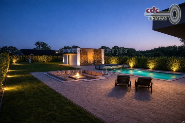 Süllyesztett, hangulatos kerti kiülő sütögetővel