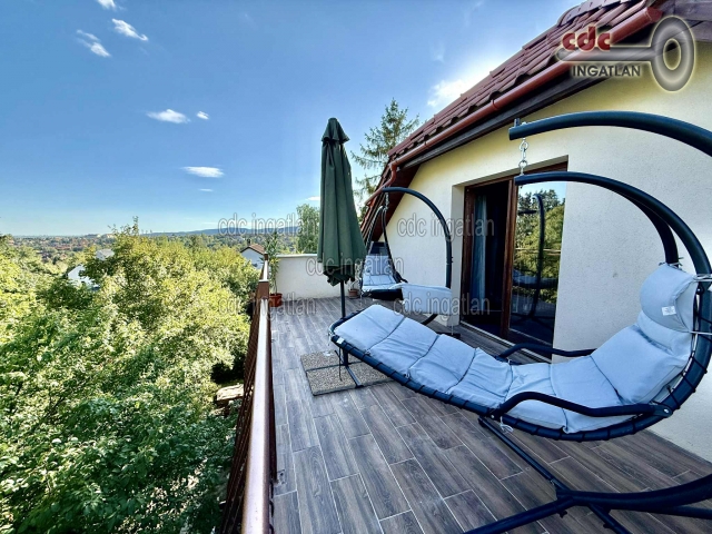 Panorámás, családi otthon eladó Szentendrén, ahol minden nap egy nyaralás! Eladó Szentendre, Pismány városrészének egyik legszebb részén, festői természeti környezetben egy különleges adottságokkal rendelkező, 159 m²-es családi ház, 720 m²-es, parkosított telken! 4 tágas szoba + amerikai konyhás nappali, 3 nagy terasz – minden napszakra jut egy kedvenc helyed! Pazar, elvehetetlen PANORÁMA, dupla garázs elektromos autótöltővel + ipari árammal. Cirkófűtés padlófűtéssel, hűtő-fűtő klíma, kandalló szolgálják a meleget. Az ingatlan körbenapozott, D-DNY-i fekvés, egész nap árad a napfény. A kertben hatalmas fenyők, örökzöldek, virágzó dísznövények találhatók, egy mesebeli kert. Csendes, nyugodt környezet, a város zajától mégis karnyújtásnyira. Ez az otthon nem csak egy ingatlan, hanem egy életérzés. Tökéletes választás azoknak, akik a természet közelségére, nyugalomra, de modern kényelemre és stílusra is vágynak. Irányár: 159.000.000 Ft. Ne maradj le erről az egyedülálló lehetőségről, ez a szentendrei álomotthon várja új tulajdonosát! Keress bizalommal még ma, és mutatom a helyet, amibe első látásra beleszeretsz!